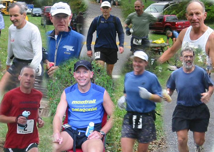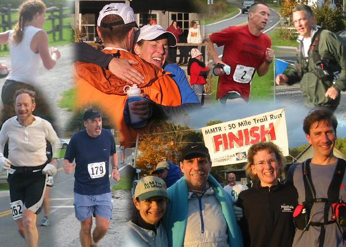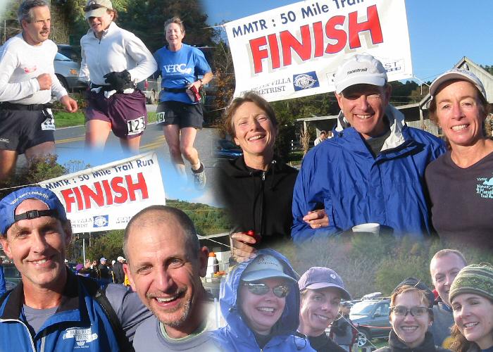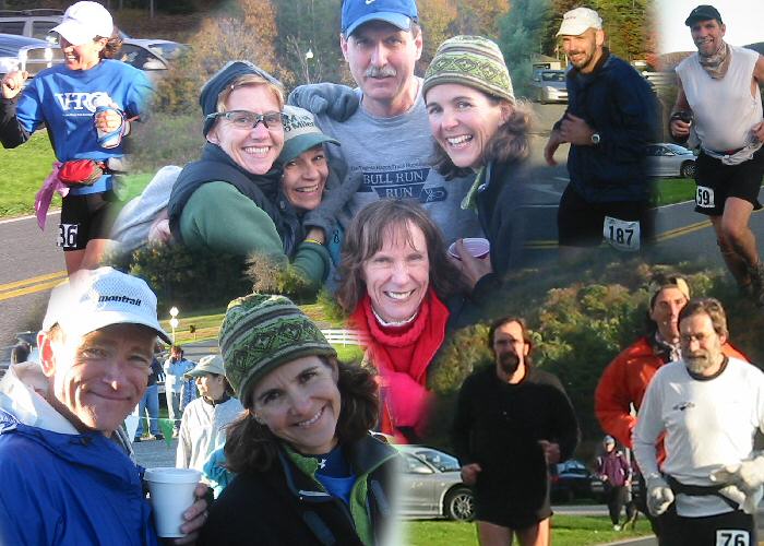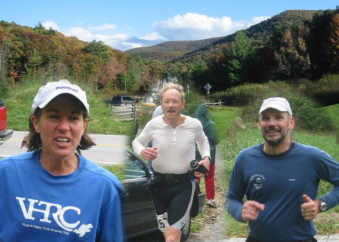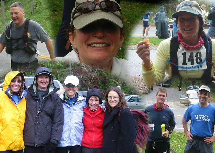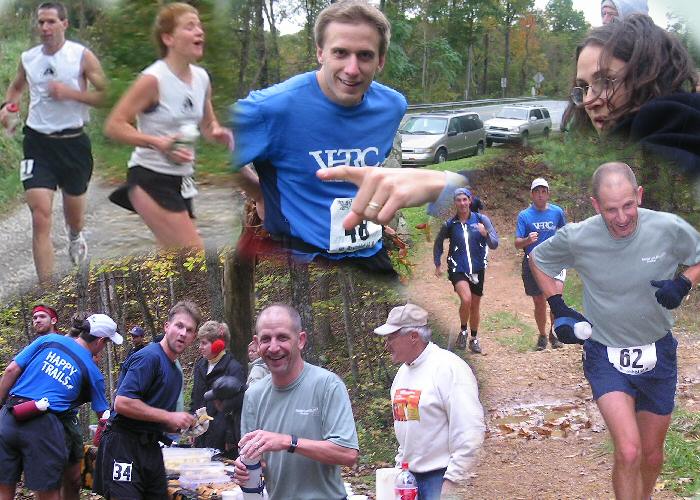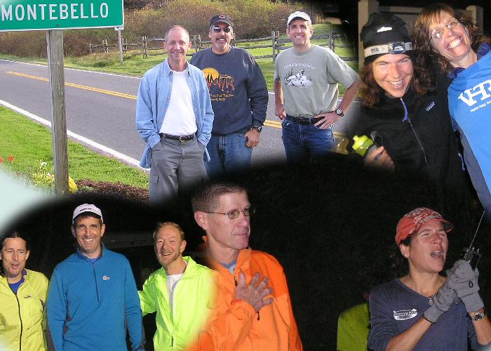 VHTRC Members before the Start At the Pre-Race Dinner Outside before the start. Annette sings the National Anthem Early aid stations and half way More halfway Even more halfway Final Halfway with Mountains at Finish Finish 1 -- Dave Mackey with David and Sean Andrish with Bunny Finish 2 Finish 3 -- the ladies console Bob Finish 4 -- David welcomes Marty The Blue Ridge Mountains by Montebello