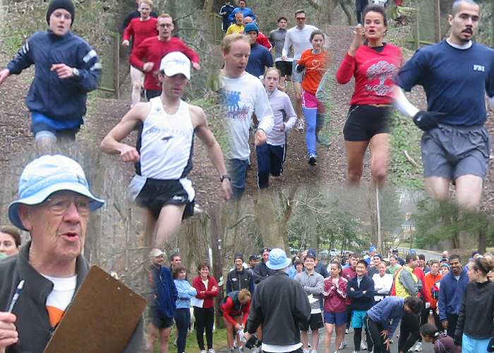 The pictures from the run are in collages. To see a collage, click on the link below after the red dot appears. The other images should download in the background while you view the first ones. If you want an individual shot e-mailed to you, click here.