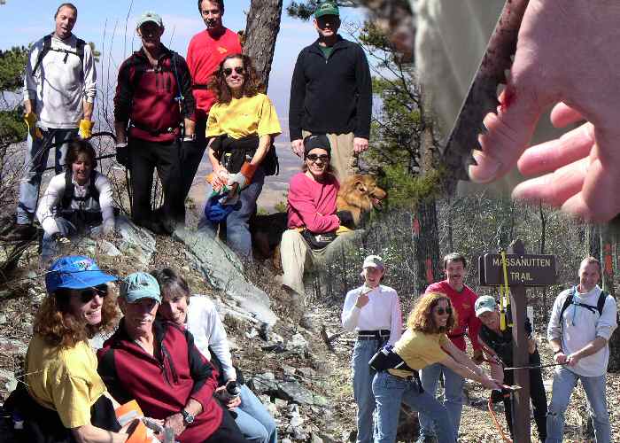 VHTRC Work Party 2004March 20, 2004Photos: Work | Evening Activities | Team Corris On March 20, the VHTRC held its annual work party on the trails in the Lee Ranger District of the George Washington National Forest. As usual, we cleared many miles of trail and had a good time at the same time. We had great weather. We should also note that we had several workers who were performing their required service for Western States, Wasatch, or Angeles Crest. I like to think that they all would have joined us even if they didn't have to! We broke into several work teams. Here are reports of the activities of each team: