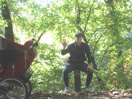 Monday, 12:30 PM: Michele called to report. They expect him at Williamsport at about 12:30 so I just put it down. (The estimated times below Williamsport are based on 20 minutes per mile. He has actually gone faster than that but he goes slower than that at night. Don't take those estimates very litterally.) Michele said that she ran to Paw Paw with him and he was