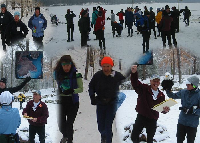 The Event: As usual, Gary had provided everything for us. Due to some park closures, Gary had to find new trail to run on. The new first loop was great and got us down to the river on the bank across from the old way. On this first chance at eagles, there were none to be seen. The water was covered by ice. Would this be the first year we were skunked at the Eagle Run? Would the headline be, "Eagles and Runners Stay Home"?