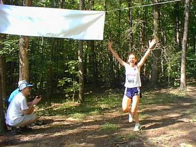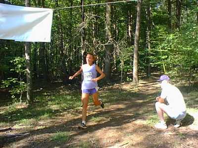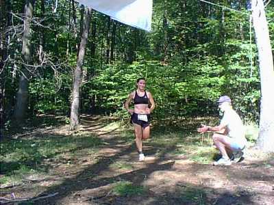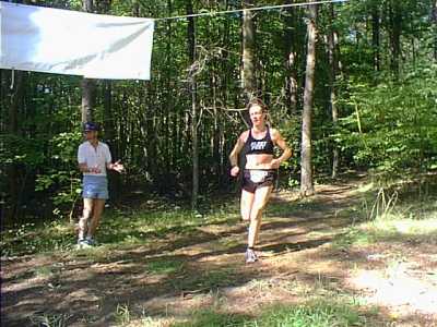 Action was fast and furious at times at the first aid station supervised by Don Boyle a finisher from last year who returned this year as a race volunteer. At the second aid station, organized by Marty Szekeresh, the field was well-spaced with most entrants running by themselves with occasional groups of 3 or 4. For many first-time trail runners the sensation of running alone in a race was new. On a twisting, forested trail, a runner just seconds behind may be hard to spot, and many women had the trail to themselves for much of the race.