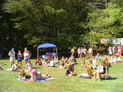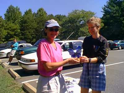 Race day excitement was not confined to the front of the course. Nearly half the starting field was composed of first time trail runners grappling with steep hills, uneven footing, and a course a half-mile longer than advertised. Two women, Peggy Hernandez and Erika Lee sprained their ankles on the way out and dropped out of the race at the first aid station. Peggy's sprain, on a previously injured ankle, appeared serious. Luckily her husband Greg Power was one of the volunteers at the first aid station and both women were transported back to the start/finish. Concerns over a possible break proved unfounded when the ankle was x-rayed in the afternoon and Greg and Peggy were headed for an evening concert Saturday night. Other race day injuries were restricted to the normal scrapes and scratches incurred from falls by some of the participants.